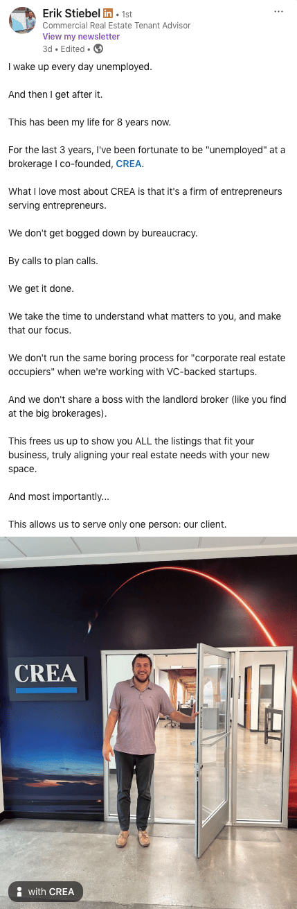Find a new home for your growing business. You're scaling fast, and you don't have time to become a CRE expert. I do this every day.