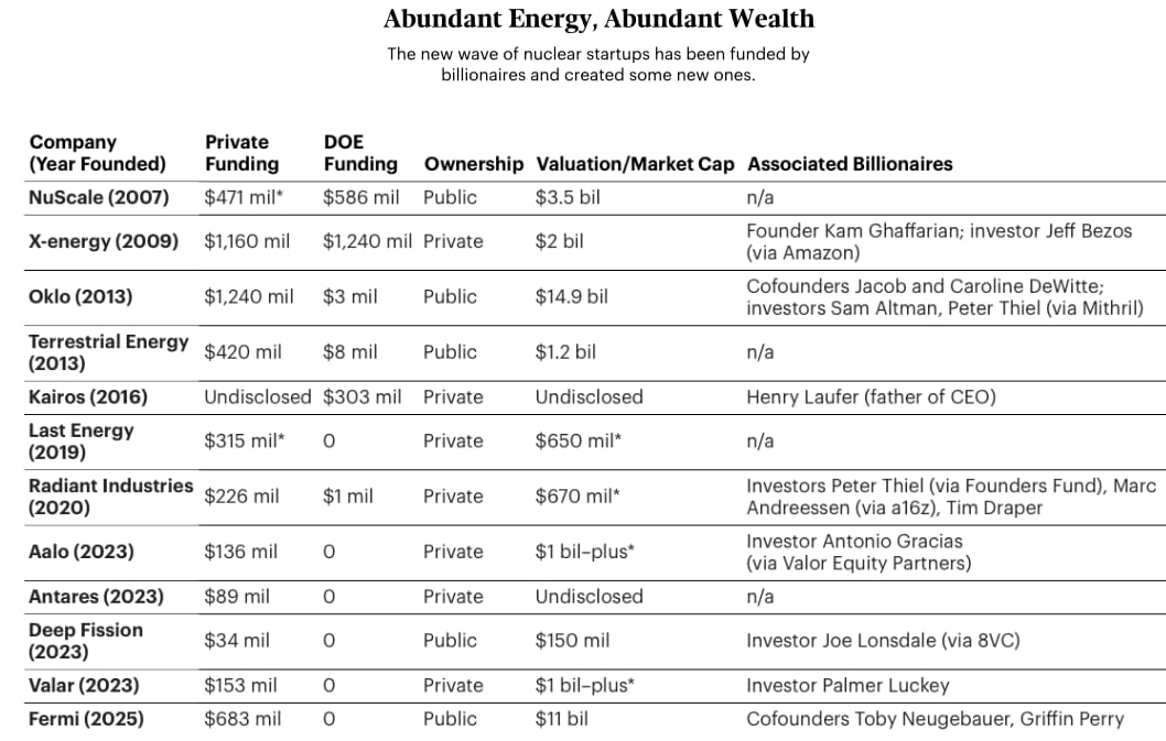 ☢︎ Aalo Atomics is prominently featured in this Forbes article on the nuclear race. A dozen startups are betting AI's power hunger saves the nuclear industry. Electricity demand is soaring, largely because of the power-sucking data centers undergirding the artificial intelligence boom, and Aaolo’s Co-founder and CEO, Matt Loszak, isn’t the only nuclear entrepreneur aiming to ride the wave of AI dollars. A dozen ventures with names like Valar Atomics, Oklo, Kairos Power, and X-energy are racing to perfect, permit, and deploy a new generation of small, prefabricated reactors that could power individual data centers or even feed the larger electrical grid.